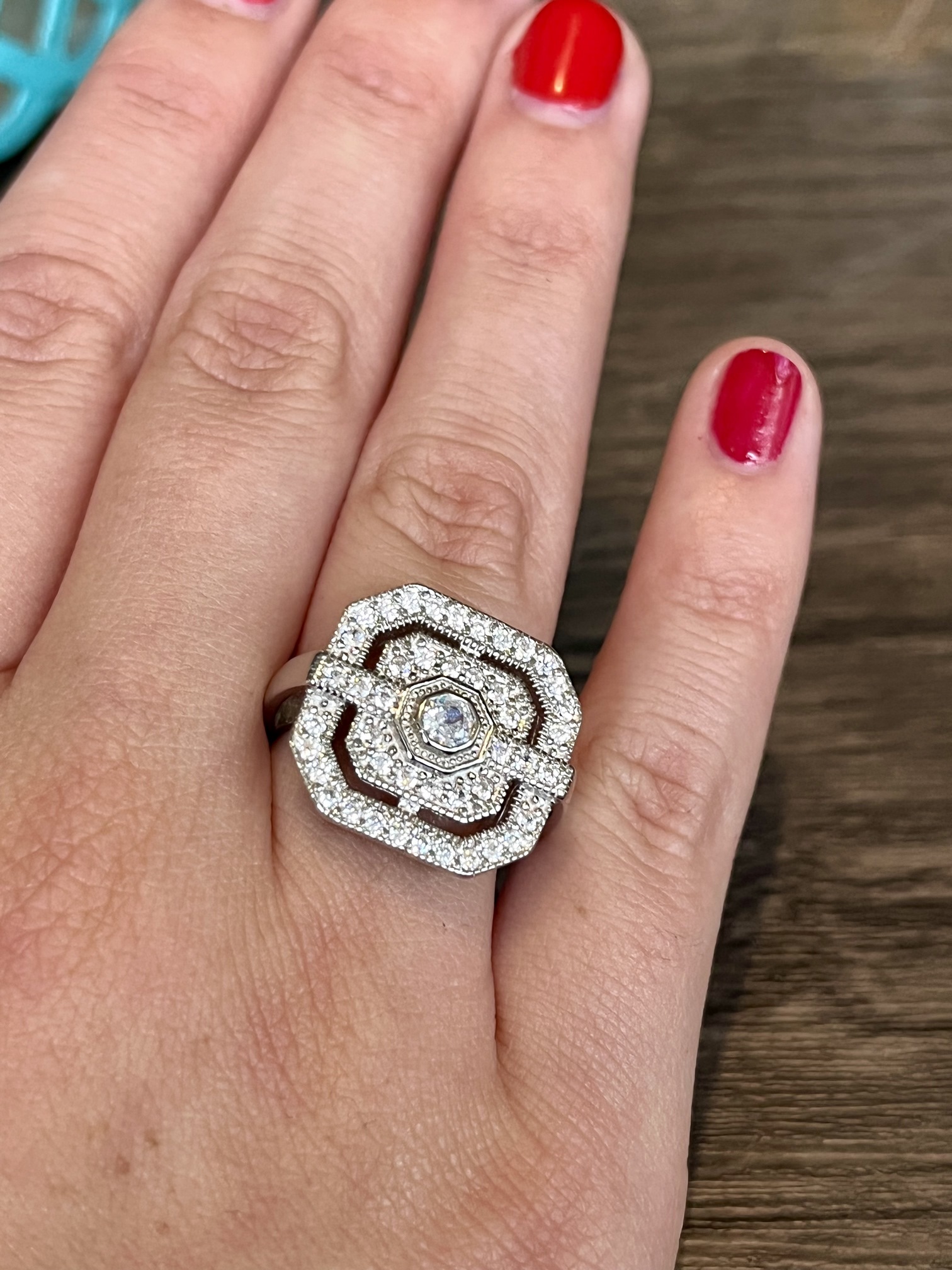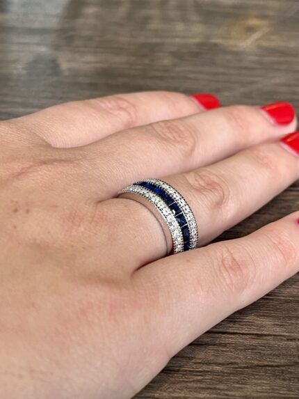 Anillo de plata de ley con baño de Rodio, calidad premium, y elegante diseño.
